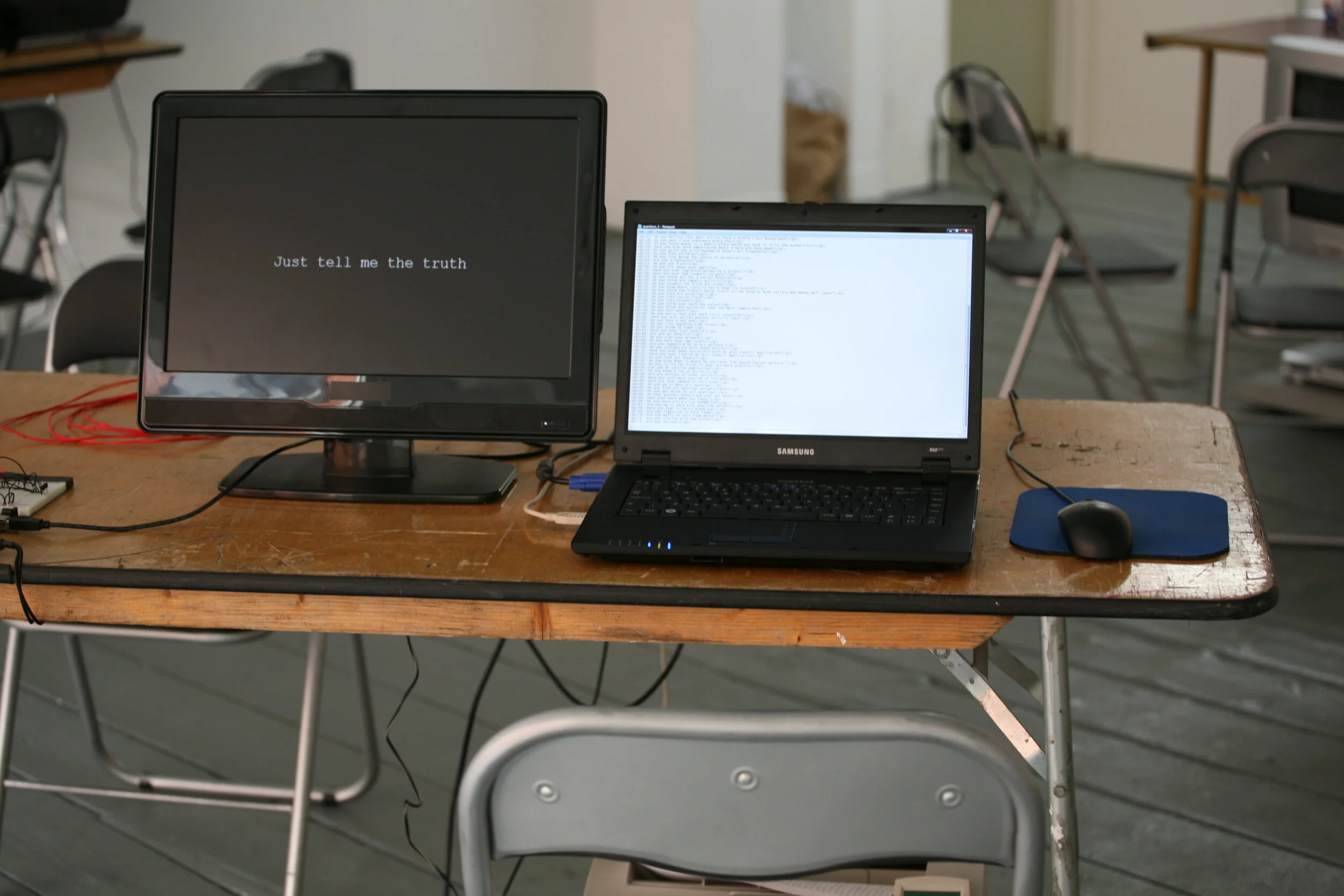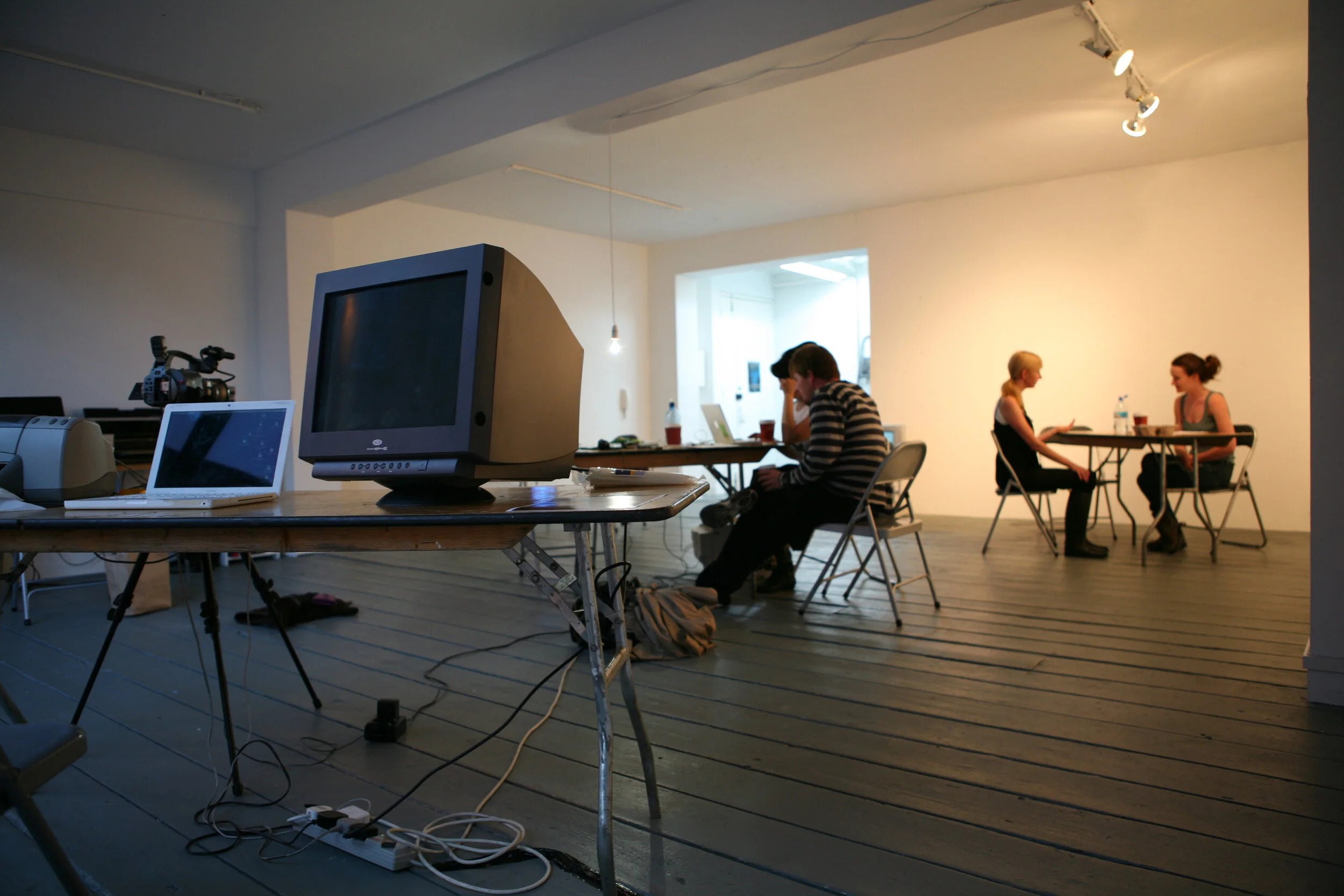 Just tell me the truth, a performance experiment by artists Louise Cherry and Jennie Guy. Hosted by MAVis, IADT, Dunlaoghaire in studio 6, Temple Bar Galleries and Studios August 2008
